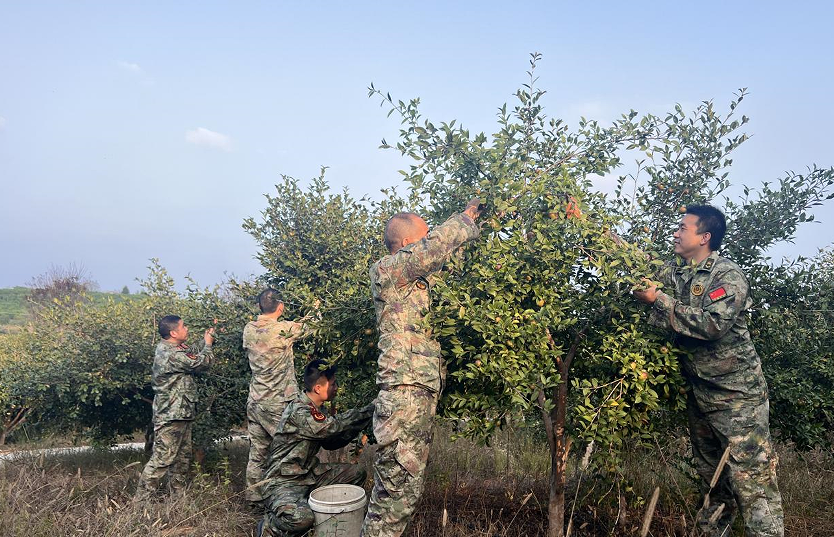 夕阳映照,一筐筐油茶果被装车运出。山野之间,那抹动人的迷彩色与层层叠叠的油茶林交相辉映,绘就一幅金秋最美的丰收画卷。现场负责人表示:“这次助农抢收,解决的是实际困难,温暖的是军心士气。这既是一次生动的拥军优属实践,也是一次特殊的民兵练兵活动,在服务人民中践行宗旨,在急难险重中锤炼队伍,这正是我们民兵的使命所在。”