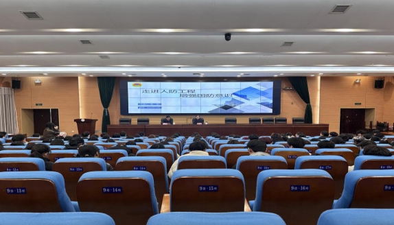 2024年12月20日上午,管理学院在图书馆报告厅举行的国防安全教育讲座。