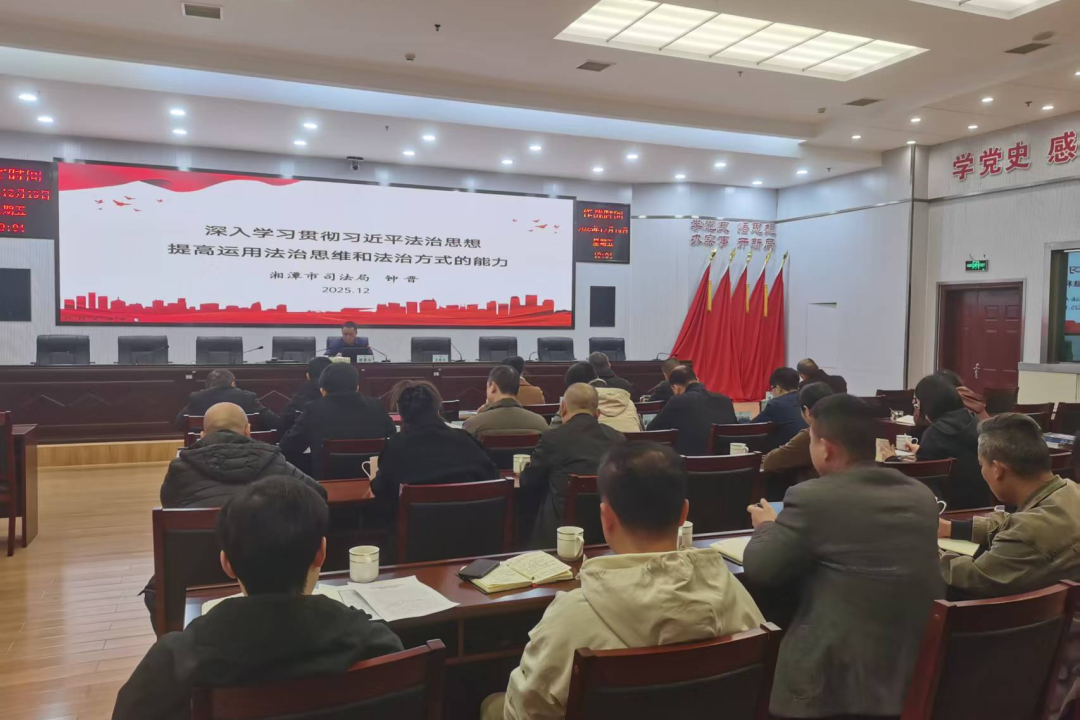 12月19日,湘潭市国防动员办公室举办法治专题培训,特邀湘潭市司法局局长钟晋作专题辅导。市国防动员办全体干部职工及县市区国防动员办分管领导和行政执法人员参加学习。