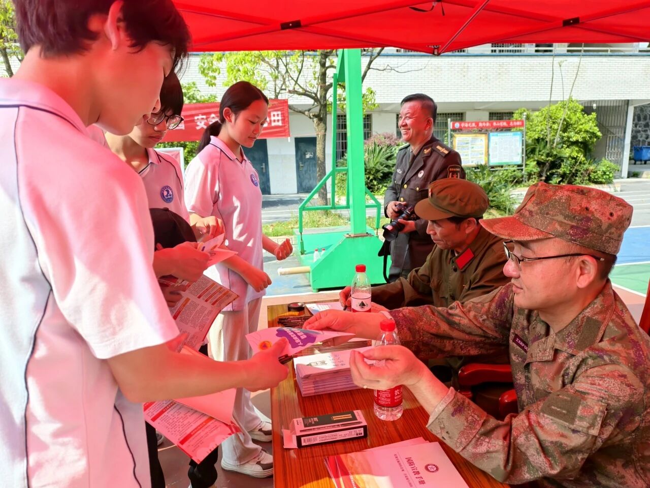 学生们领取《国家安全知识手册》。