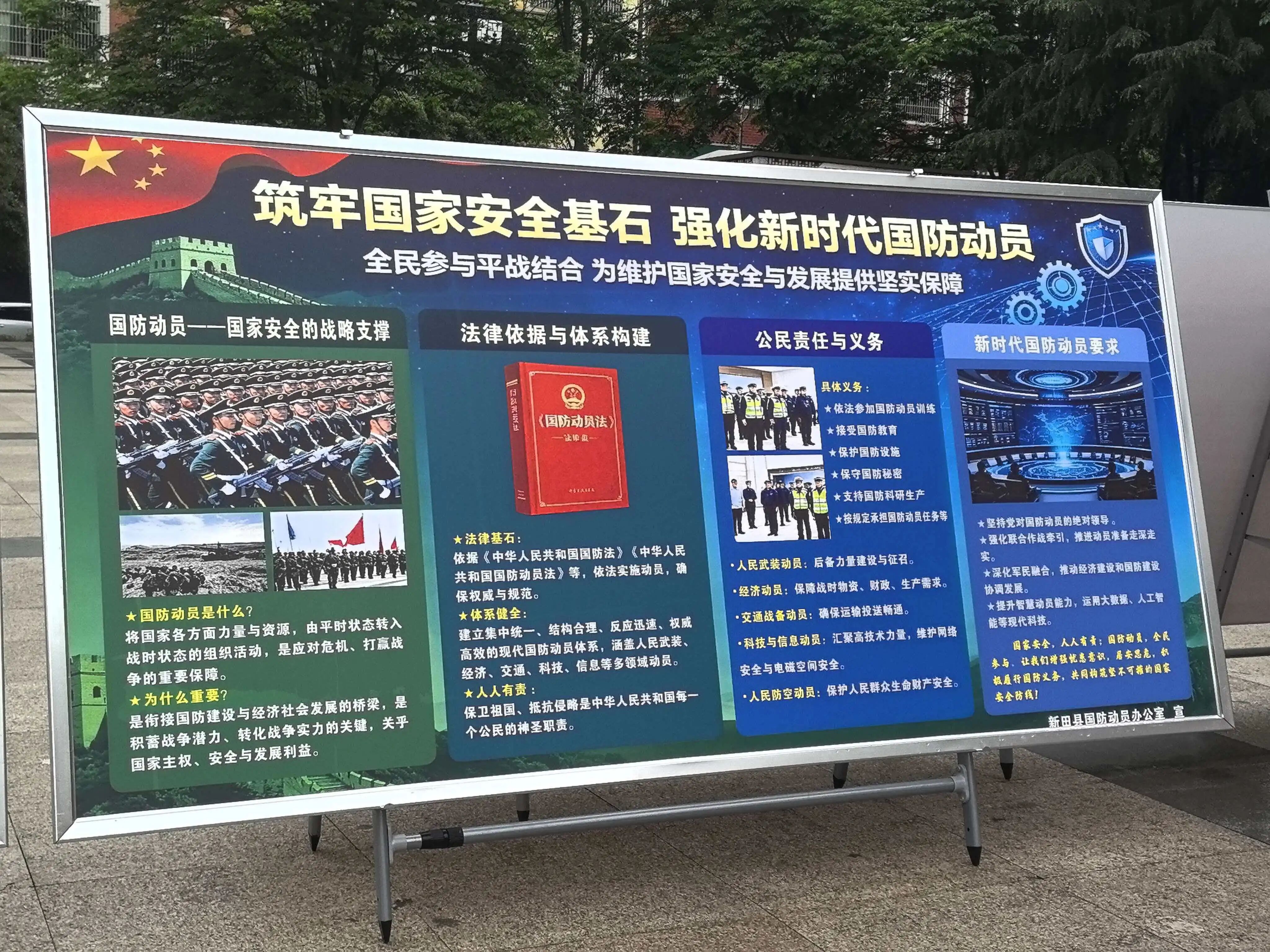 新田县国防动员办公室在县文体广场开展国防安全集中宣传活动。活动现场,工作人员通过悬挂宣传横幅、设置咨询展台、发放宣传资料、现场答疑讲解等方式,向过往群众普及国家安全、国防动员、人民防空、军事设施保护等相关知识。