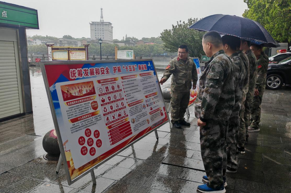 沅江市国防动员办公室联合沅江市人武部,开展以“统筹发展和安全,护航‘十五五’新征程”为主题的全民国家安全教育日宣传活动。活动通过摆放国动警示教育展板、发放人防宣传手册、讲解国动安全知识等形式开展。