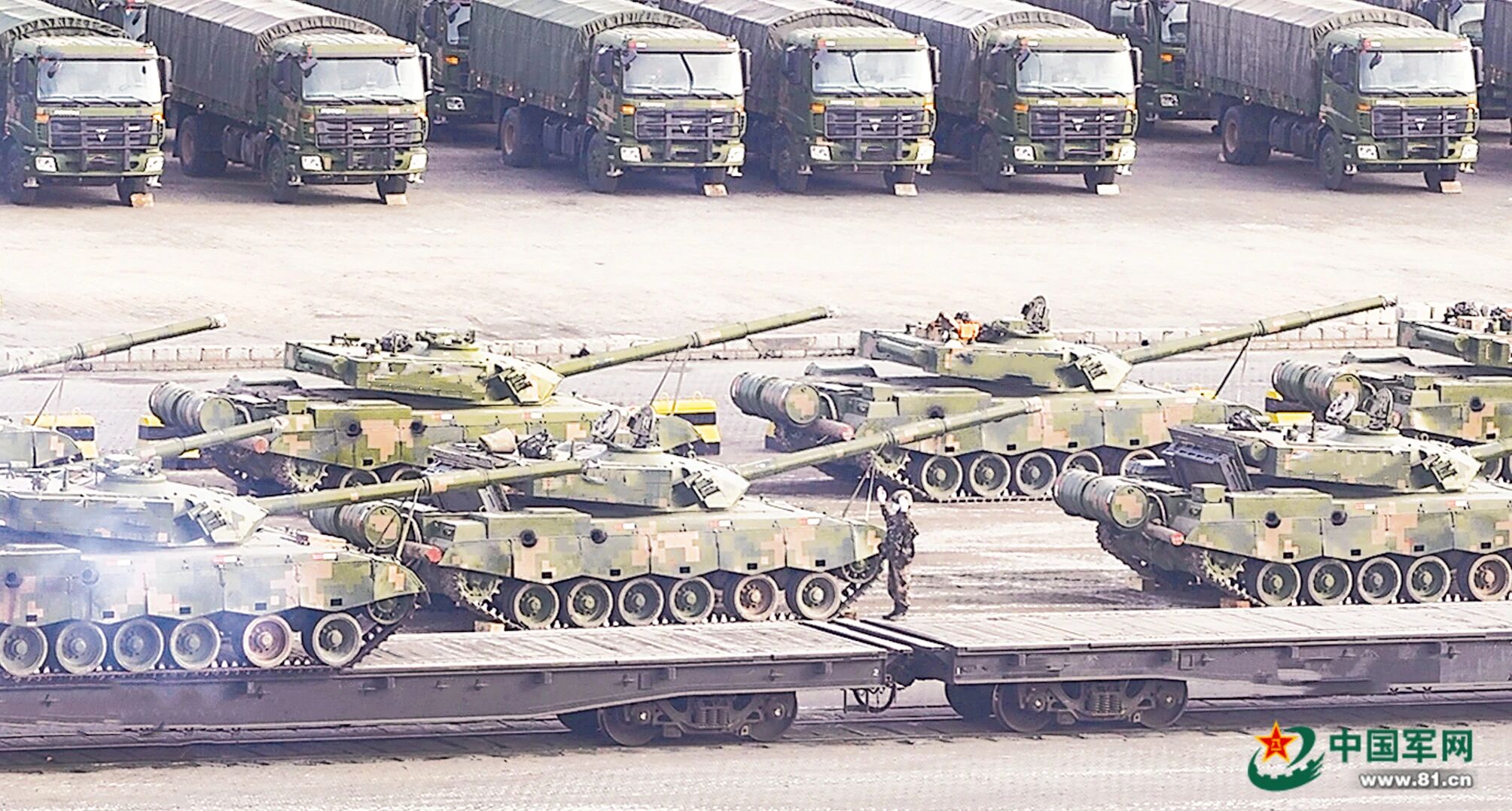 在该中心调度下,部队装备有序装载。李彬喜 摄