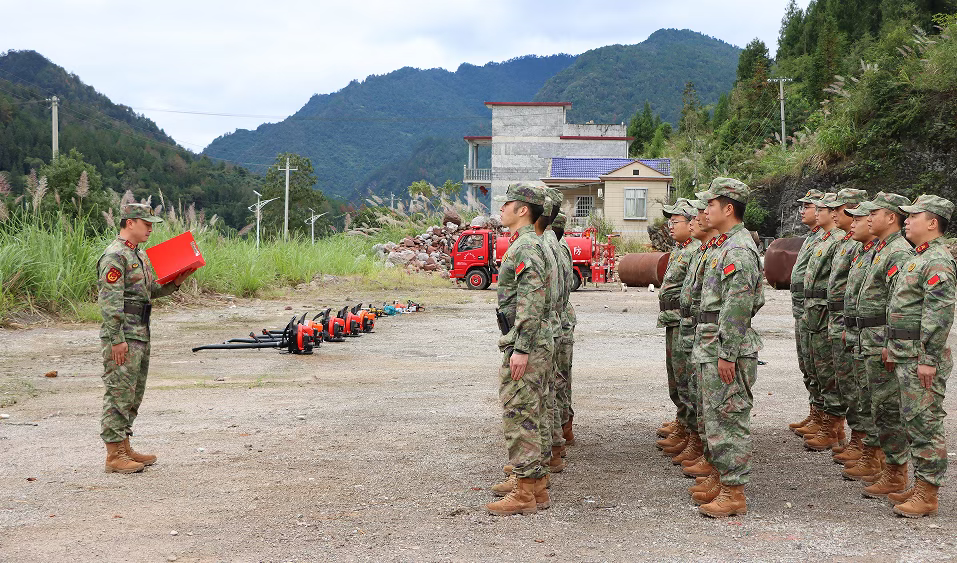 汝城县人武部联合县应急局组织开展森林灭火实战演练,强化军地一体协作,全面检验民兵应急连处置能力。演练模拟汝城大坪镇桐子园地域发生森林火灾,过火面积约15亩,因植被茂密、风力较大、气温较高,火势迅速蔓延,严重威胁周边群众安全。县人武部接到地方政府启动应急预案的要求后,迅速集结应急连森林灭火分队,携带装备赶赴现场。队伍编设8个小组,分工负责群众转移、伤员救治、村庄守护和火场扑救等工作。