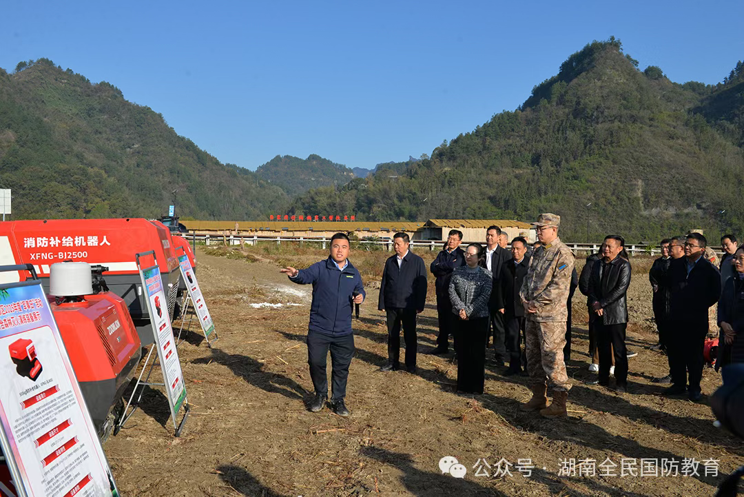 地面上,区消防救援大队的高压灭火水泵沿防火通道架设,喷出百米水龙压制火头;隔离带开辟组在火场周边利用大型挖掘机、隔离带开辟机器人,结合人工使用油锯、割灌机等传统设备开辟50米宽的防火隔离带,同步清理枯枝杂草等可燃物;空中,消防无人机喷射高阻燃凝固灭火剂和无人机挂载水枪实施作业,扑灭树冠火;险要地段,无人机小组利用中联重科大型无人机投掷4公斤、25公斤森林灭火弹,爆炸后释放的灭火干粉快速均匀抛洒扩散至火场区域,单颗灭火弹最小覆盖面积可达70m³,可瞬间熄灭大火。“以前在峰林灭火‘望崖兴叹’,现在军地协同的‘空地一体’战术,让复杂地形灭火效率提升40%!”现场观摩的武陵源区委书记吴俞萍感慨道,这正是对该区“人防+物防+技防”三防体系的实战检验。
