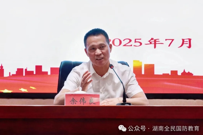 为深入学习贯彻习近平强军思想和习近平总书记关于加强全民国防教育的重要论述,贯彻落实新修订的《中华人民共和国国防教育法》,进一步提升全省全民国防教育工作水平,7月9日至11日,2025年湖南省全民国防教育工作培训在长沙举行。省委宣传部副部长、省文明办主任赵成新,省委教育工委委员、省教育厅党组成员余伟良,省委党校(湖南行政学院)副校(院)长康重文,省军区转业办大校主任吴斌参加。