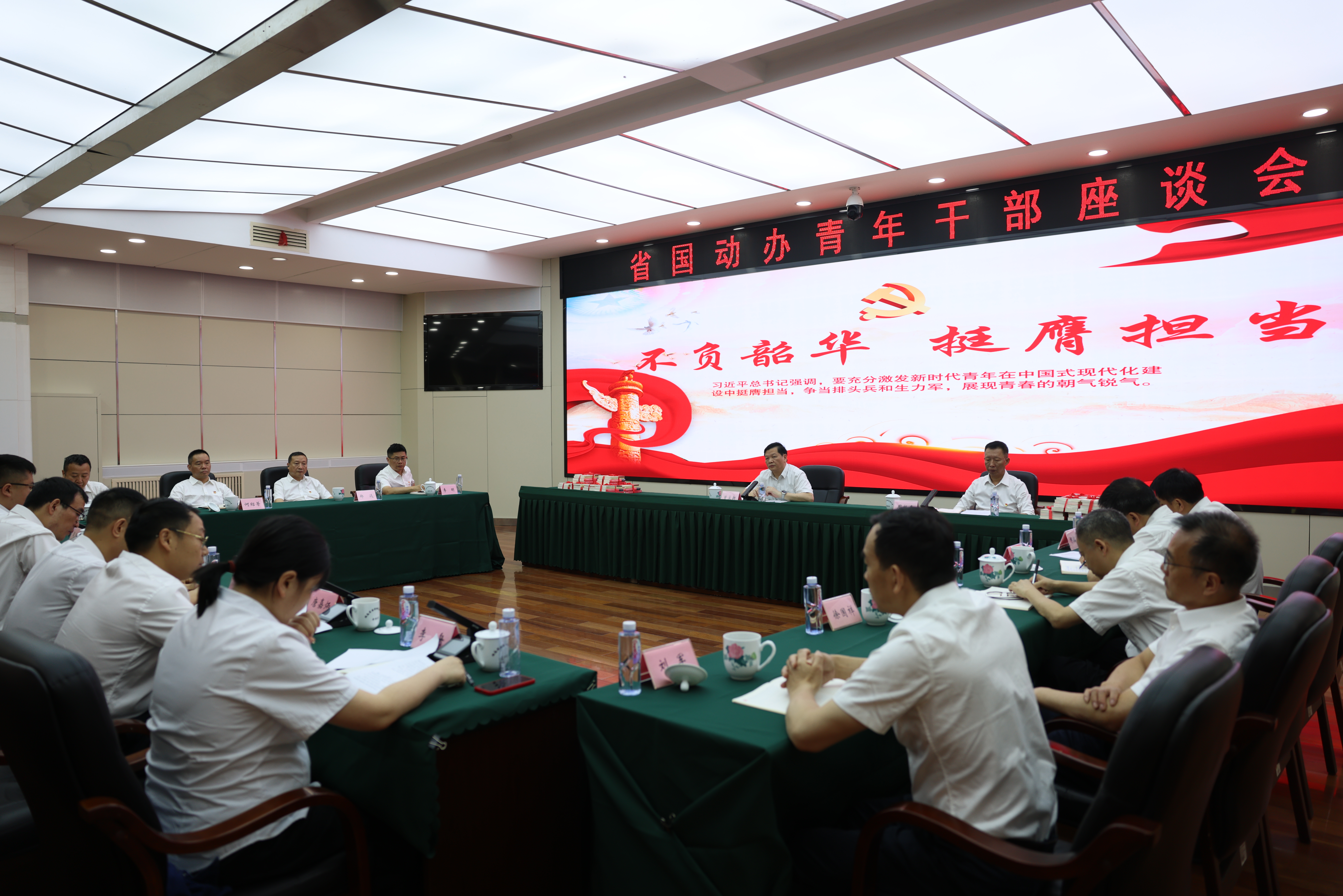 5月23日,省国防动员办召开青年干部座谈会。座谈会以“不负韶华、挺膺担当”为主题,深入学习贯彻习近平总书记关于青年工作的重要思想和关于年轻干部的重要论述,聚焦深入贯彻中央八项规定精神学习教育,激励引导青年干部积极投身国防动员事业,为推动全省国防动员工作高质量发展贡献青春力量。座谈会由省国防动员办二级巡视员周报春主持,省国防动员办党组副书记、副主任、机关党委书记曾立新出席座谈会并讲话。机关各处室、直属单位负责人列席座谈会。