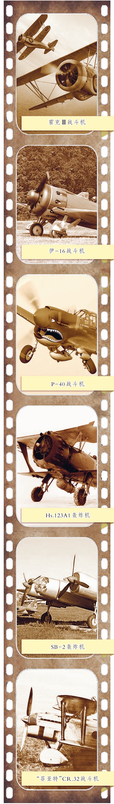 抗战时期,中国空军战机机型繁杂,既有初期的美制霍克Ⅱ战斗机、霍克Ⅲ战斗机,也有意大利的“菲亚特”CR.32战斗机、法国的D.510C型战斗机;既有德制亨舍尔Hs.123A1轰炸机、图波列夫SB-2轰炸机、伊留申DB-3轰炸机,也有后来的伊-16、P-40战斗机等。凭借着这些五花八门的机型,中华热血男儿在抗战史上留下了一个个壮烈时刻。